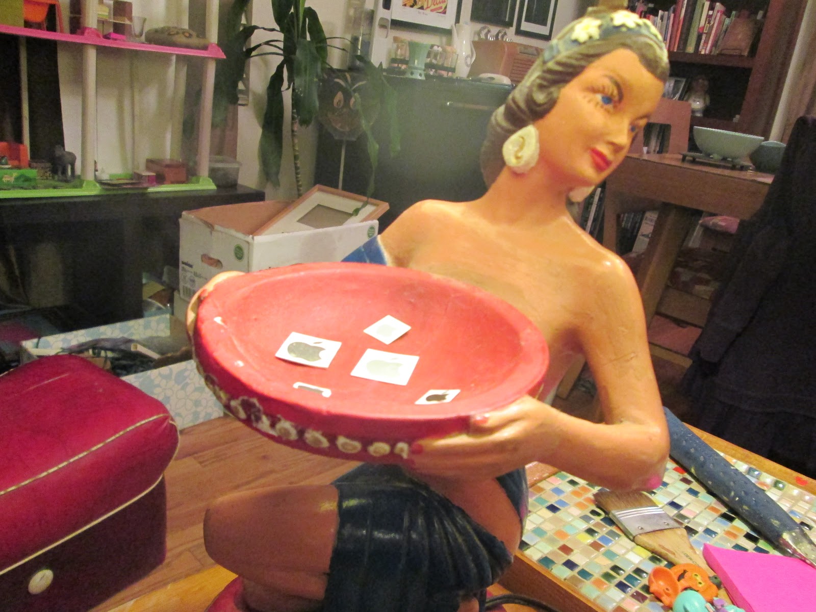 I’m in the home stretch on these little tee-vee typewriters. I glued silver tissue paper over the white areas on the back. At any given time, I have about two packages of silver and gold tissue paper. It’s my favorite background for pictures in frames and for projects like this. I also like to use old maps and I have a mess ‘o maps in my craft room. Guess what I’m waiting to do?? Yep....I’m waiting for the glue i used to adhere the tissue paper to dry.